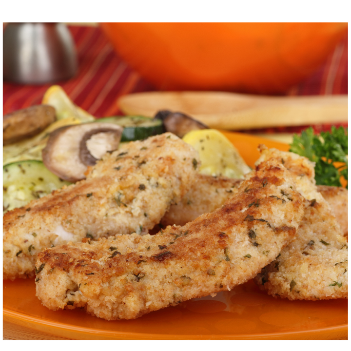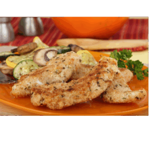 If you’re looking for an easy and delicious way to increase the amount of protein you eat without adding much fat, these chicken tenderloins are what you’ve been searching for.  They’re simple to make, can be prepared ahead and stored in the refrigerator or freezer, and go with just about any meal.  For the health-conscious cooks out there, these homemade chicken tenderloins are a lot healthier than the deep fried frozen chicken tenders you’ll find at the grocery store.  One chicken tenderloin adds about 14 grams of protein and only a gram and half of fat.  This recipe calls for cooking the chicken tenders in extra virgin olive oil, which does add a small amount of fat—but it’s a worthwhile choice. EVOO is a minimally processed, heart-healthy monounsaturated fat known for its anti-inflammatory properties and support of cardiovascular health. It’s certainly a step up from the highly processed, pro-inflammatory ingredients commonly used in most prepared chicken tenders in the freezer section of your grocery store.