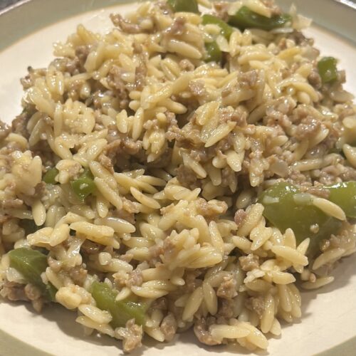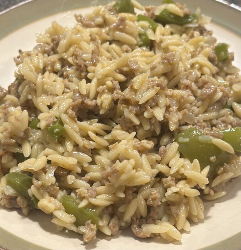 This One-Pam Sausage Orzo is the ultimate quick, cozy meal- ready fast but hearty enough to truly satisfy. Made with simple ingredients and balanced with protein, carbs, and veggies, it’s an easy weeknight dinner that feels both nourishing and comforting. Perfect for busy nights when you want something wholesome without the fuss.