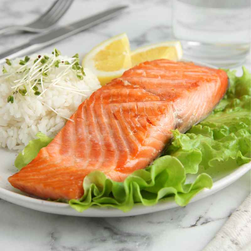 Salmon is one of the best sources of omega-3 fatty acids, which play an important role in supporting heart health, reducing inflammation, and supporting brain function. It’s also rich in high-quality protein, vitamin D, and selenium, making it a nutrient-dense choice for a satisfying meal.