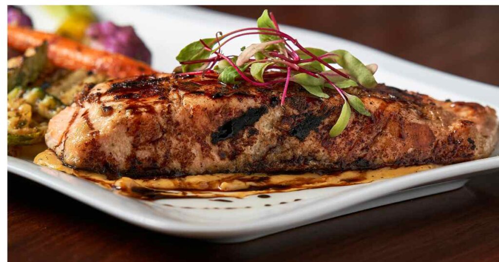 **For the best texture and flavor, cook salmon to an internal temperature of 125–130°F for medium-rare. At this temperature the fish stays tender, moist, and buttery. The USDA recommends 145°F, but cooking salmon that long often results in a drier, less flavorful fillet. If you prefer a softer, restaurant-style salmon, pull it from the heat around 125–130°F and allow it to rest briefly before serving.